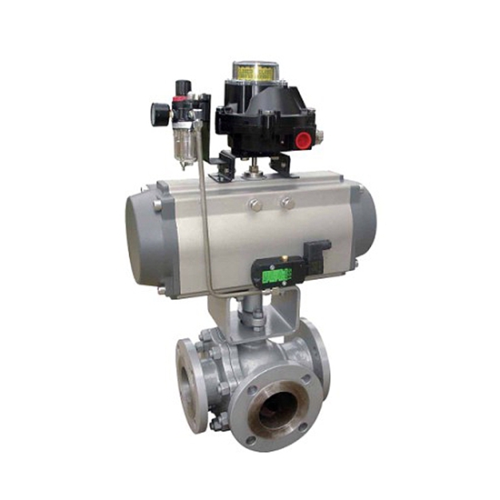 氣動三通球閥可分為L型和T型。L型三通球閥用于介質(zhì)流向的切換,能使相互垂直的兩個通道連通。三通球閥一般采用兩閥座結(jié)構(gòu),亦可根據(jù)用戶要求采用四閥座結(jié)構(gòu)。四閥座密封三通球閥具有造型美觀、結(jié)構(gòu)緊湊合理,它不僅可實現(xiàn)介質(zhì)流向的切換,也可使三個通道相互連通,同時也可關(guān)閉任一通道,使另外兩個通道連通,靈活控制管路中介質(zhì)的合流或分流。