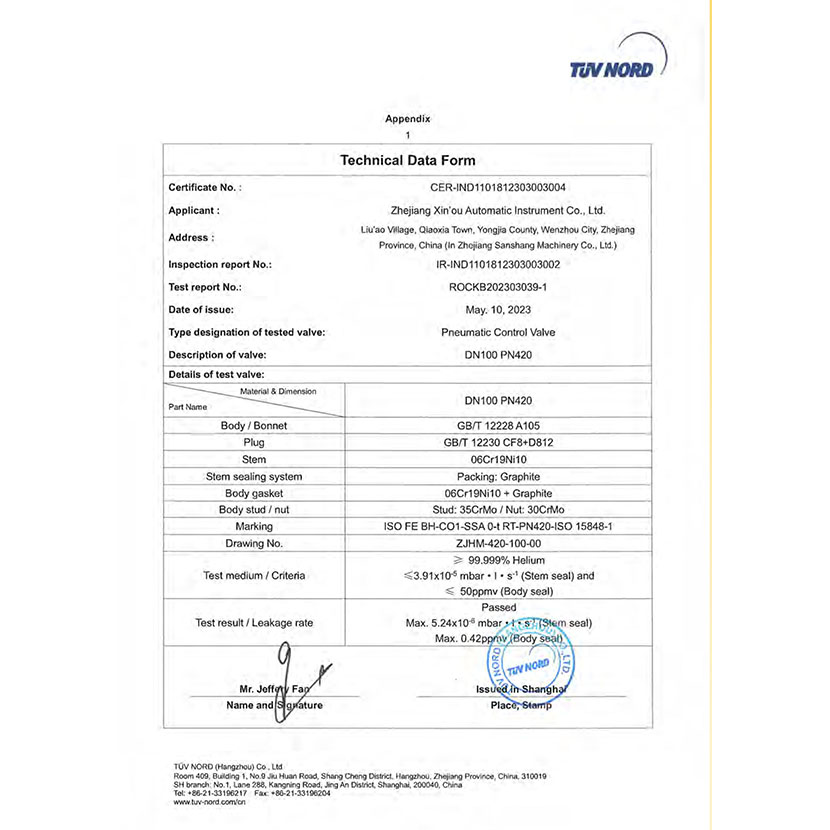 調節閥 微泄露證書 2